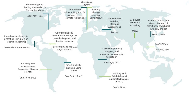 GeoAI can be applied in various urban planning sectors, including land-use planning, housing and infrastructure management, mobility and transport optimization, water and waste management, public safety, disaster management, environmental and climate resilience, and administration, policy and governance. Many Asian countries have begun integrating GeoAI into urban planning processes. Selected examples include: