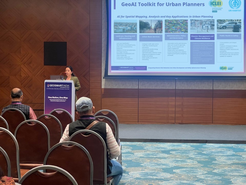 ICLEI South Asia, in collaboration with ICLEI Europe and UN-Habitat, supported the preparation of the report AI for Spatial Mapping and Analysis: GeoAI Toolkit for Urban Planners. The toolkit aligns with UN-Habitat reports, including UN-Habitat’s AI & Cities: Risks, Applications and Governance and the World Smart Cities Outlook 2024. It also responds to the AI capacity needs and gaps identified in Global Assessment of Responsible AI in Cities. The GeoAI Toolkit was launched at the 4th Global Expert Group Meeting on People-Centered Smart Cities in Baku, Azerbaijan, organized by UN-Habitat in December 2025.