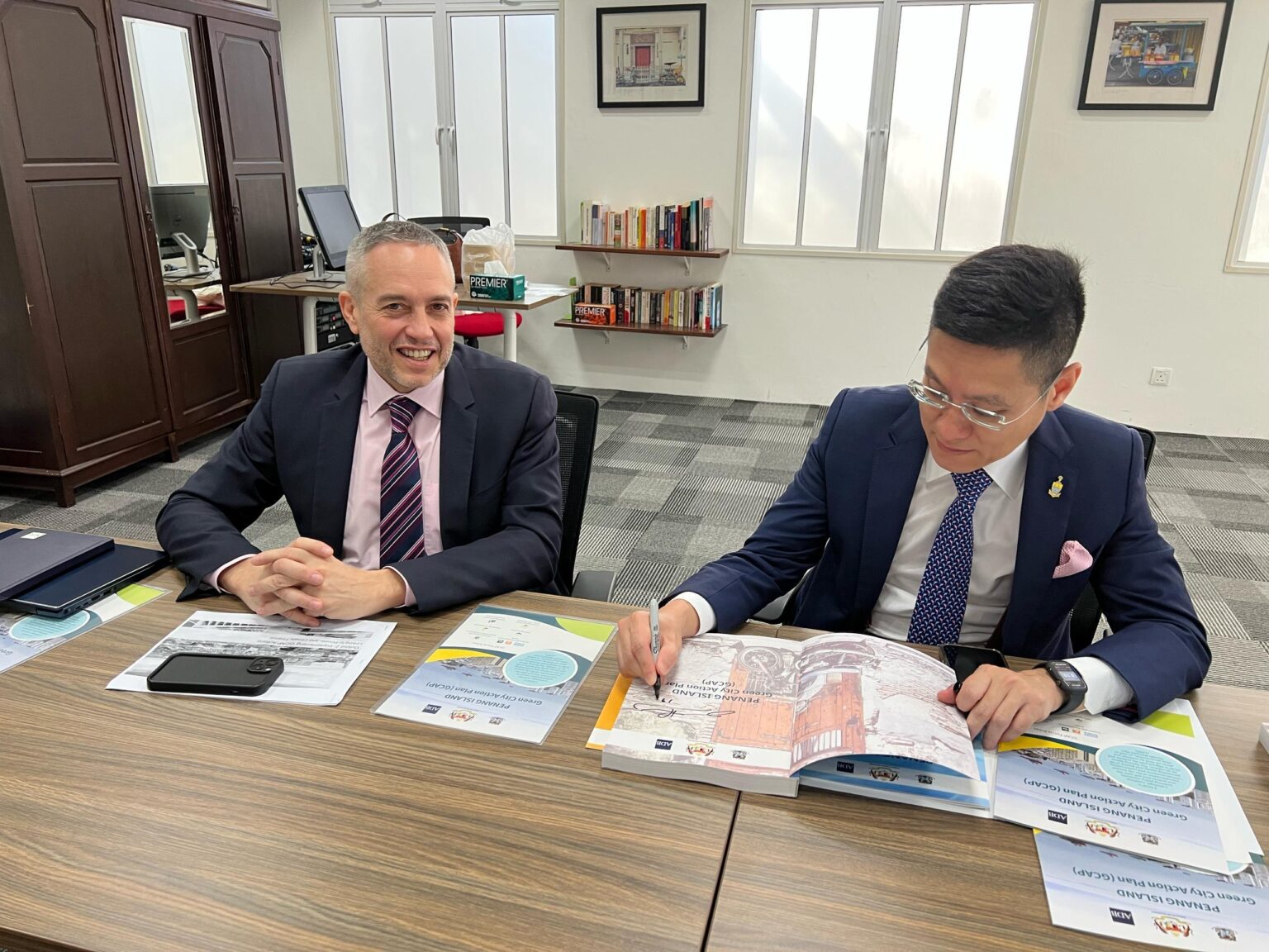 On 19 February 2025, a meeting was held with State Executive Councillor for Infrastructure and Transport, Penang State Government, Zairil Khir Johari, along with representatives from ICLEI South Asia, the Indonesia-Malaysia-Thailand Growth Triangle Joint Business Council (IMT-GT JBC), and the Asian Development Bank (ADB). During the meeting, the Penang Island Green City Action Plan (GCAP) was officially signed and approved, setting the course for its implementation.