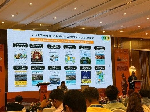Emani Kumar, Deputy Secretary General ICLEI and Executive Director ICLEI South Asia, delivered a session on “Implementation of Net-Zero Climate Action Plans: The Example of Ahmedabad.” Speaking of practical pathways for cities to embed sustainability in urban planning, he shared examples of best practices for effective climate action planning methodology and implementation of climate projects by Indian cities, with support from ICLEI South Asia. These cities include Ahmedabad, Vadodara, Rajkot, Coimbatore, Tirunelveli, Tiruchirappalli, Udaipur, Siliguri, Vijayawada, among others.