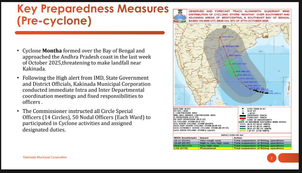 The webinar also featured a real-world example of disaster preparedness from Kakinada, presented by Municipal Commissioner V. V. Satyan. The city’s coordinated response to Cyclone Montha in October 2025 showcased the value of early warning systems, preparedness measures, including advisories issued to fishermen, identification and evacuation of population from vulnerable areas, establishment of a 24×7 municipal control room, proactive relief and rehabilitation measures, and rapid restoration of infrastructure.