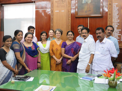 The expert team also visited Kochi, the project model city. Meetings were carried out with a wide range of stakeholders (scientists, college teachers, councillors, administrators and corporates) to understand the present situation in Kochi, identify gaps and look into possible ideas of projects and collaborations. Mrs. Soumini Jain, Mayor of Kochi extended her full support to the project stressing on the importance of the project in the city. The team was also informed that the Town Planning Committee of Kochi Municipal Corporation has given their approval to the project. The City Council will also be discussing the project so that the MoU with the city can then be signed. A site visit to Mangalavanam, a mangrove forest in the heart of Kochi city was also carried out along with visit to the city to have a look at the canals, which are blocked now but were once the lifeline of Kochi. The visit to the model city thus led to developing a better understanding of the scenario in Kochi through interactions with stakeholders along with site visits to some areas of high biodiversity and ecosystem service significance.