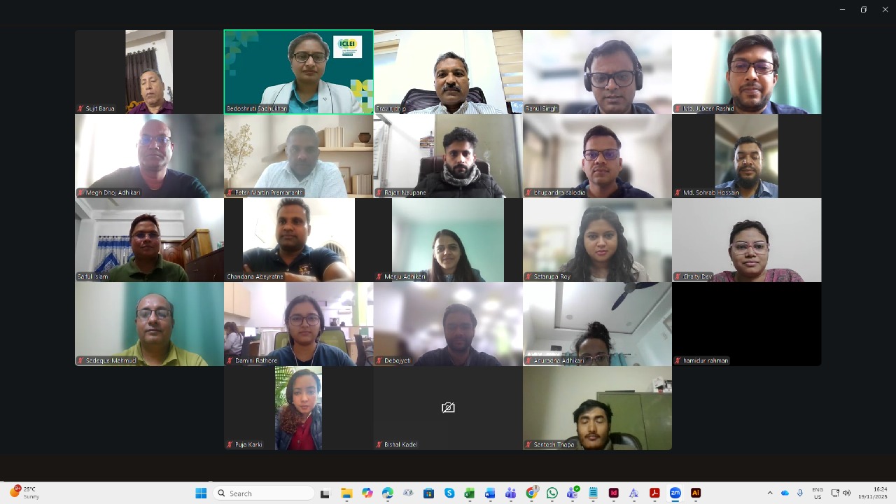 The webinar was anchored by Bedoshruti Sadhukhan, Associate Director, ICLEI South Asia; Rahul Singh, Senior Manager, ICLEI South Asia; Pravinjith KP, Managing Director, EcoParadigm; and Vikas Sanghwan from Karnal Municipal Corporation, who guided participants through technical sessions, case studies, and collaborative exercises.