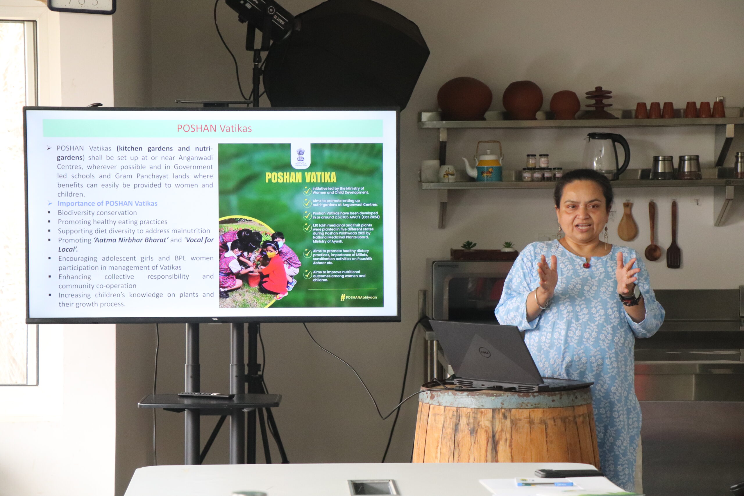 ICLEI South Asia facilitated the workshop. Through her presentations, Monalisa Sen, Associate Director, ICLEI South Asia, detailed the PM POSHAN scheme and underscored ways in which school food gardens could complement the scheme’s objectives of improving child nutrition while also creating experiential learning opportunities. Taking example from the School Gardening Manual released by ICLEI South Asia, she shared insights on integrating nutrition, environmental stewardship, and experiential education and offered practical, step-by-step framework for schools to plan, implement, and sustain food gardens by integrating activities within their academic curricula.
