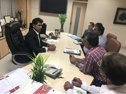Mr. Nicolas Muhlich from SNZ Engineers and Planners AG visited Rajkot on the 17th and 18th November, 2017 to understand the existing public transportation infrastructure and on ground situation for a prefeasibility study of electrification of Bus Rapid Transport System (BRTS) corridor in Rajkot under the CapaCITIES project. A meeting was carried out with Mr. Jaiman Upadhyay, Mayor, RMC; Mr. Banchhanidhi Pani (IAS), Municipal Commissioner, RMC; Mr. Arun Mahesh Babu (IAS), Deputy Municipal Commissioner, RMC; Mr. Chirag Pandya, General Manager, Smart Cities; Mr. Rasik Raiyani, General Manager, Rajkot Rajpath Limited, RMC by Mr. Nicolas Muhlich, Mr. Ashish Rao Ghorpade, Deputy Director, ICLEI South Asia and Mr. Ankit Makavana, Senior Project Officer, ICLEI South Asia.