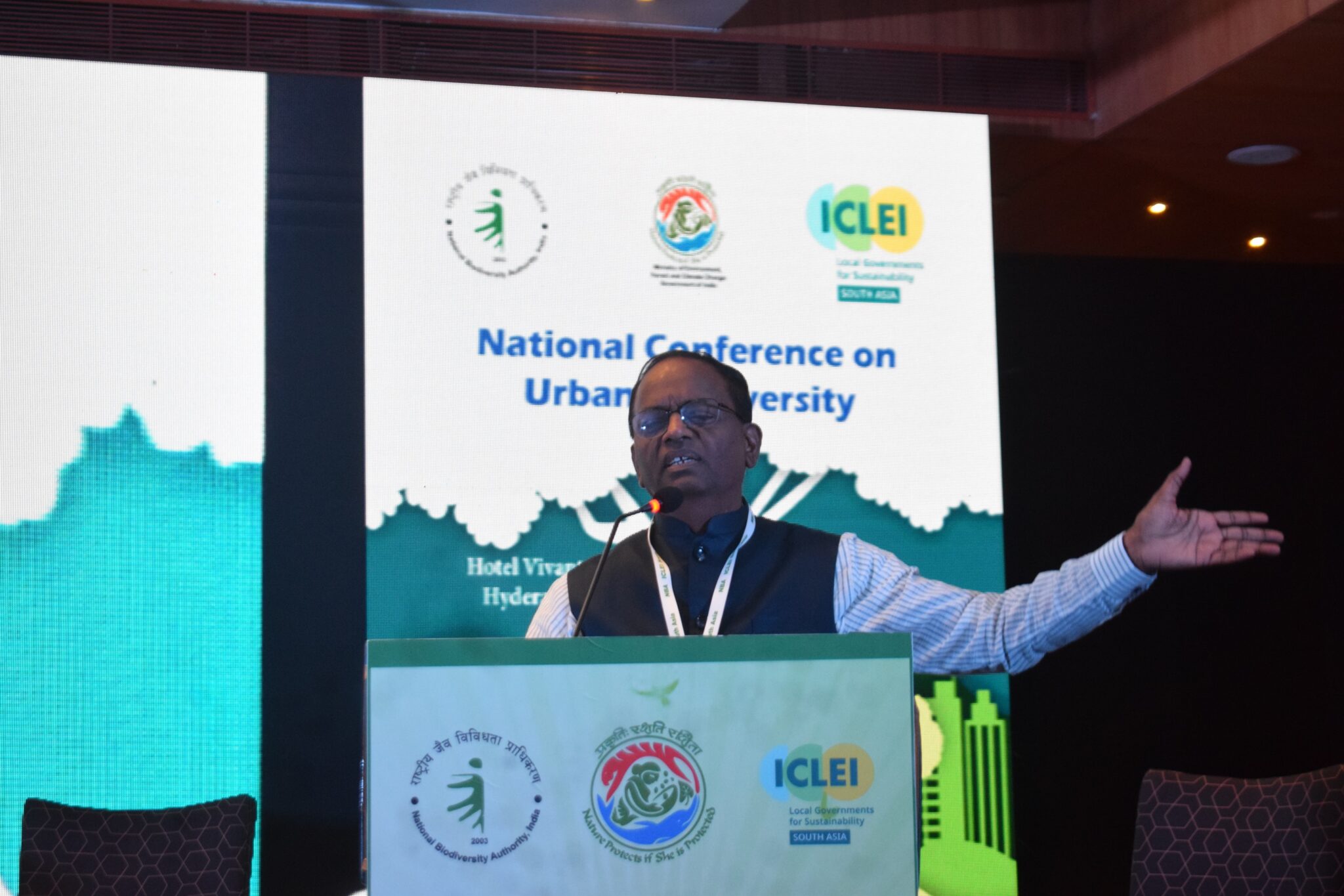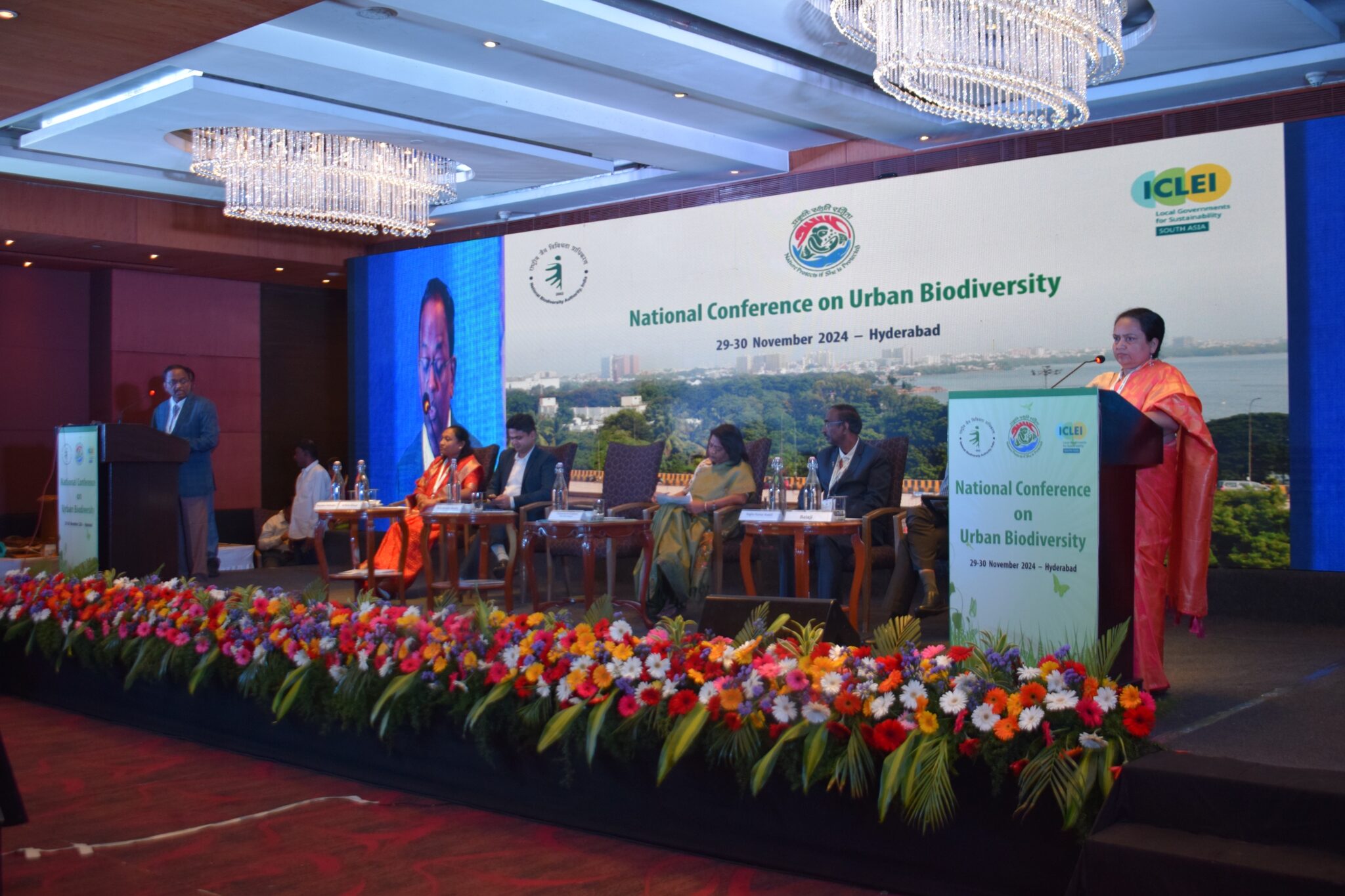 ICLEI – Local Governments for Sustainability, South Asia, in collaboration with the National Biodiversity Authority, organised a two-day national conference on urban biodiversity. The conference was held on 29 and 30 November 2024 in Hyderabad. The event saw the participation of over 200 delegates, bringing together mayors, municipal commissioners, policymakers, environmental experts, forest officials, and urban planners from 35 cities in India to discuss the pressing issue of biodiversity conservation in urban environments.