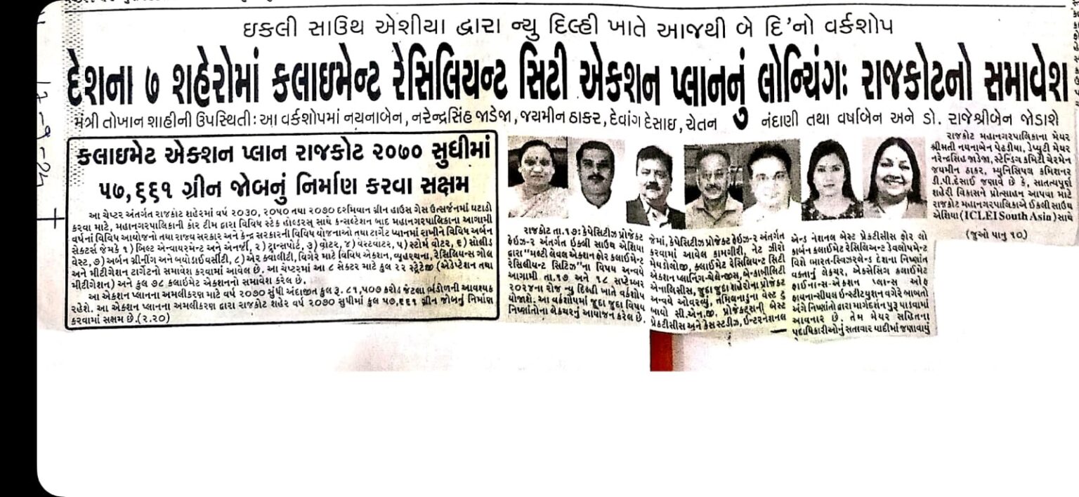 - The workshop was inaugurated by Mr. Emani Kumar, Executive Director, ICLEI South Asia with opening remarks from Mr. Hans Peter Egler, Senior Director of Public Affairs and Head of the Cities Practice, South Pole, Ms. Ridhima Sud, Sr. Thematic Advisor for Climate Change, (SDC) and Smt. Naynaben Pedhadiya, Hon. Mayor, Rajkot Municipal Corporation. The speakers highlighted the need to close the climate finance gap and support cities in developing bankable projects that integrate climate action into municipal delivery and socio-economic development.