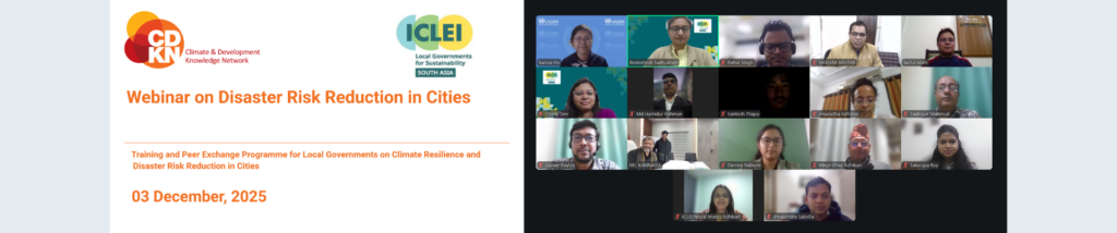 To support local governments in strengthening their disaster preparedness, ICLEI South Asia conducted a webinar on Disaster Risk Reduction (DRR) on 3 December 2025. The session was organised under the third phase of the Climate and Development Knowledge Network (CDKN) – Accelerating Inclusive Action project, supported by the Ministry of Foreign Affairs of the Netherlands […]