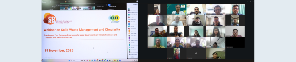 ICLEI South Asia conducted a webinar on Solid Waste Management and Circularity on 19 November 2025 for city officials from Bangladesh, India, Nepal, and Sri Lanka. This marked the beginning of a series of webinars under CDKN Asia’s year-long training and peer exchange programme for local governments on climate resilience and disaster risk reduction, and […]