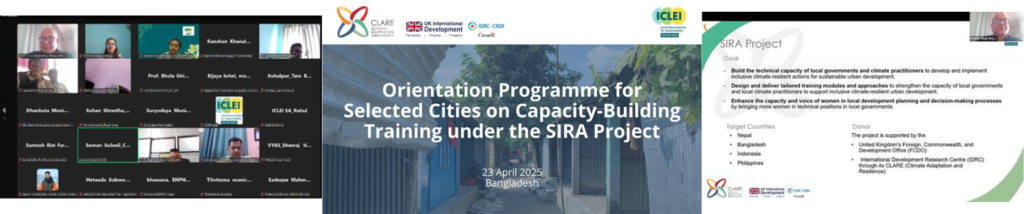 As part of the Enhancing Local Capacities in Socially Inclusive Resilience in Asia (SIRA) Project, ICLEI – Local Governments for Sustainability, South Asia, successfully conducted two virtual orientation sessions for local government representatives in Nepal and Bangladesh on 22 and 23 April 2025, respectively. These sessions kick-started the project’s capacity-building initiative to strengthen inclusive urban […]