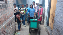 Three Swachh Sewaks were hired by ICLEI South Asia to train and support municipal sanitary workers in initiating segregated waste collection in the ward. The Swachh Sewaks, over the period of five months, interacted with residents and other stakeholders of the community to garner their support and initiate segregation practices at the source, provided training to the municipal sanitary workers for segregated collection of waste from households and supported them in improving segregated collection efficiency by developing new beat routes. Through continuous and rigorous one-on-one interactions, residents were educated about the importance and benefits of segregation at source. A mass awareness drive was also conducted. Two bins were distributed to every household– green for wet waste and blue for dry, followed by practical demonstration of waste segregation. Segregated wet waste was transported to the nearby biomethanation facility for processing.