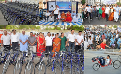 • RMC has initiated a public cycle sharing pilot project in four prime locations (five cycles in each location) of the city. More than 25 hotels have also made cycles available for their guests. Also, 60 cycles in all 18 BRTS stations and 15 cycles in corporation zonal offices are available on a rental basis, which are being used by more than 700 people per week. After the significant response to the pilot public cycle sharing scheme, prefeasibility study and business plan for public bicycle sharing system in Rajkot city has been prepared under Urban-LEDS project to strengthen non-motorised transport (NMT) system and accelerate a shift towards sustainable transport modes. It is intended to implement this project in a phased manner. Successful implementation of plan will help Rajkot city to reduce its fuel consumption of 867 kilolitres and GHG emission by 2072 tonnes carbon dioxide equivalents per year.