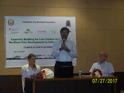 As part of the series of consultative workshops to formulate the City Climate Action Plan, the second Climate Action Plan Workshop for CapaCITIES Project was conducted in Coimbatore on July 27, 2017. This Workshop was a Shared Learning Dialogue (SLD) with the Stakeholder Committee and Climate Core Team in Coimbatore facilitated by ICLEI South Asia.