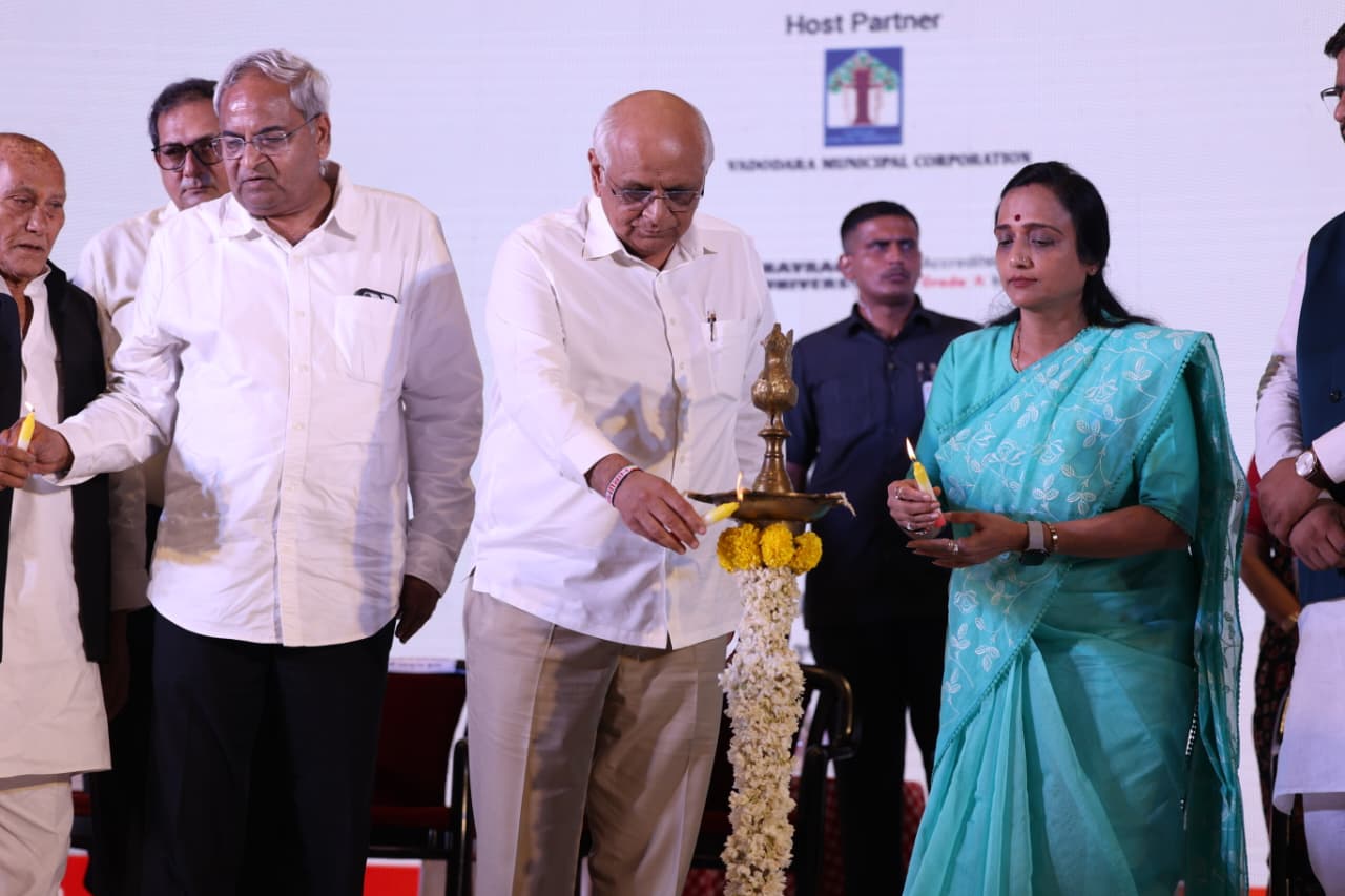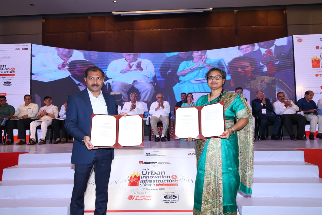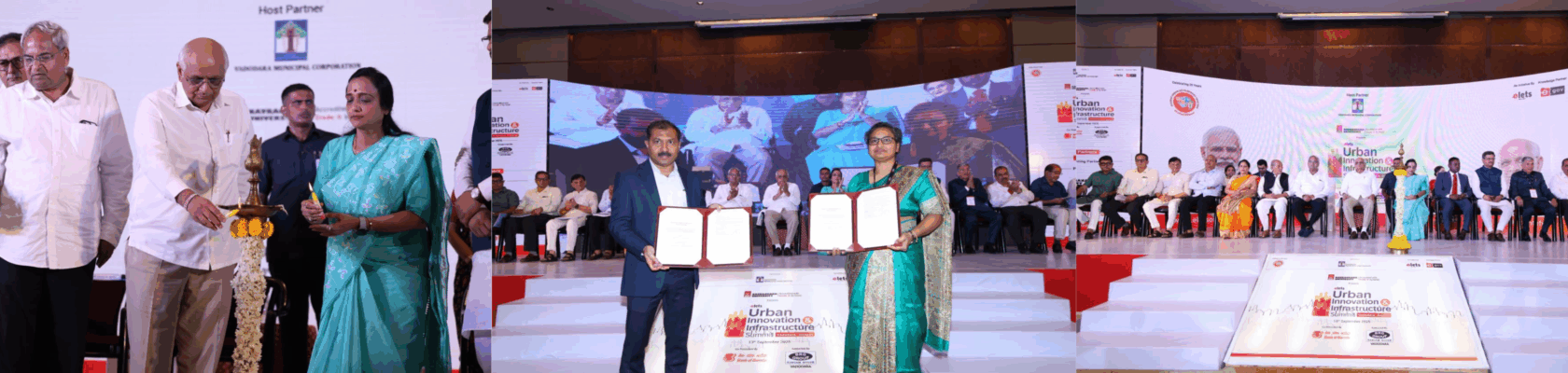V. M. Rajput, Deputy Commissioner, Vadodara Municipal Corporation, and Bedoshruti Sadhukhan, Associate Director, ICLEI South Asia, exchanged the MoU during the Urban Innovation & Infrastructure Summit organised by VMC, in the presence of Shri Bhupendrabhai Patel, Hon’ble Chief Minister of Gujarat; Smt. Pinkyben Soni, Hon’ble Mayor of Vadodara; Arun Mahesh Babu, IAS, Municipal Commissioner; Chiragbhai Barot, Hon’ble Deputy Mayor of Vadodara; Dr. Sheetal Mistry, Hon’ble Chairman of the Standing Committee, Vadodara; and several other dignitaries.